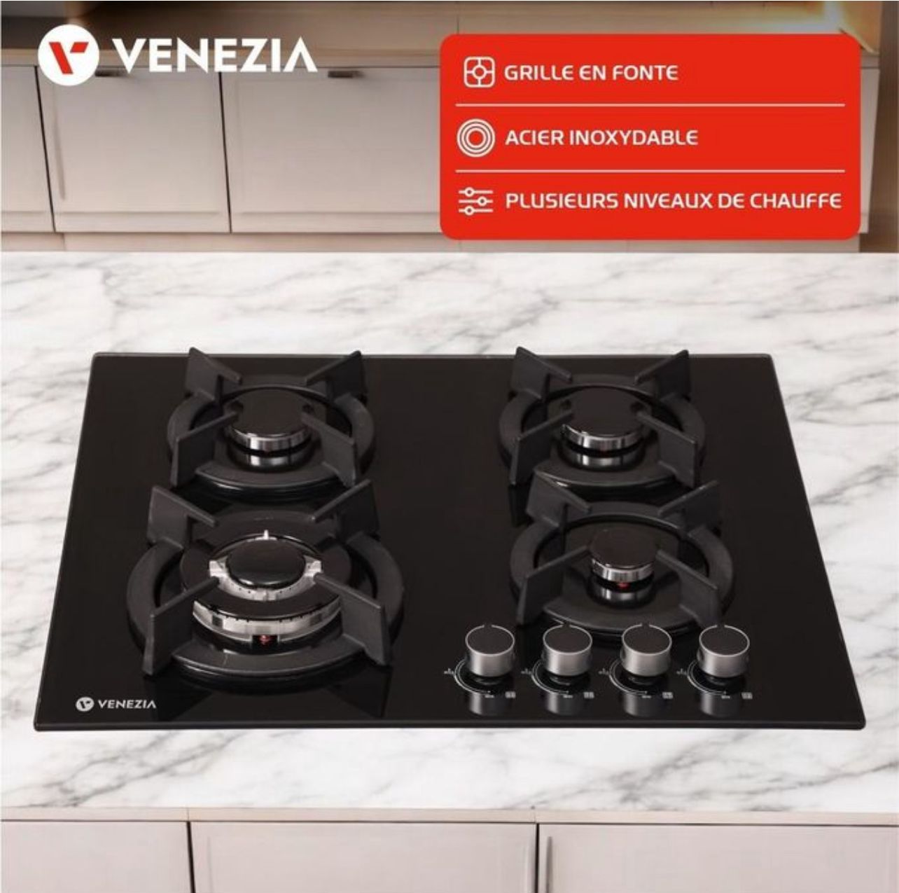 Plaque de Cuisson Gaz Venezia – Allumage Électrique et Design Moderne